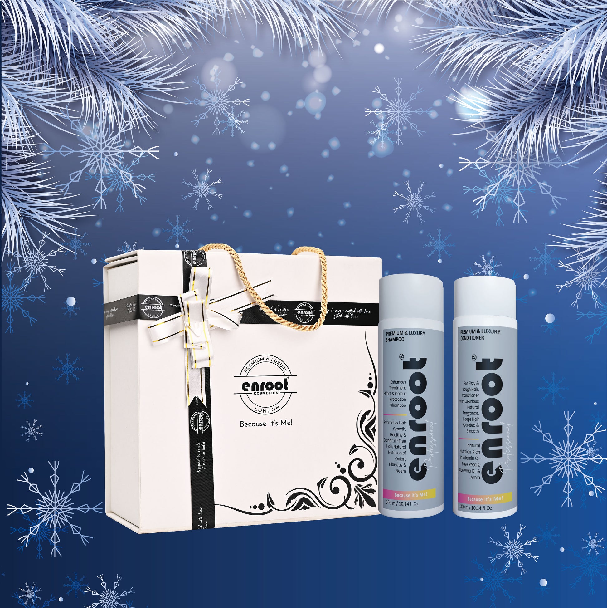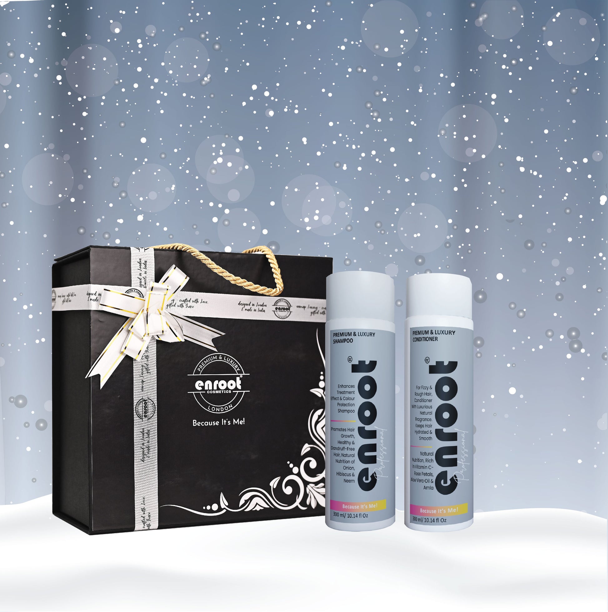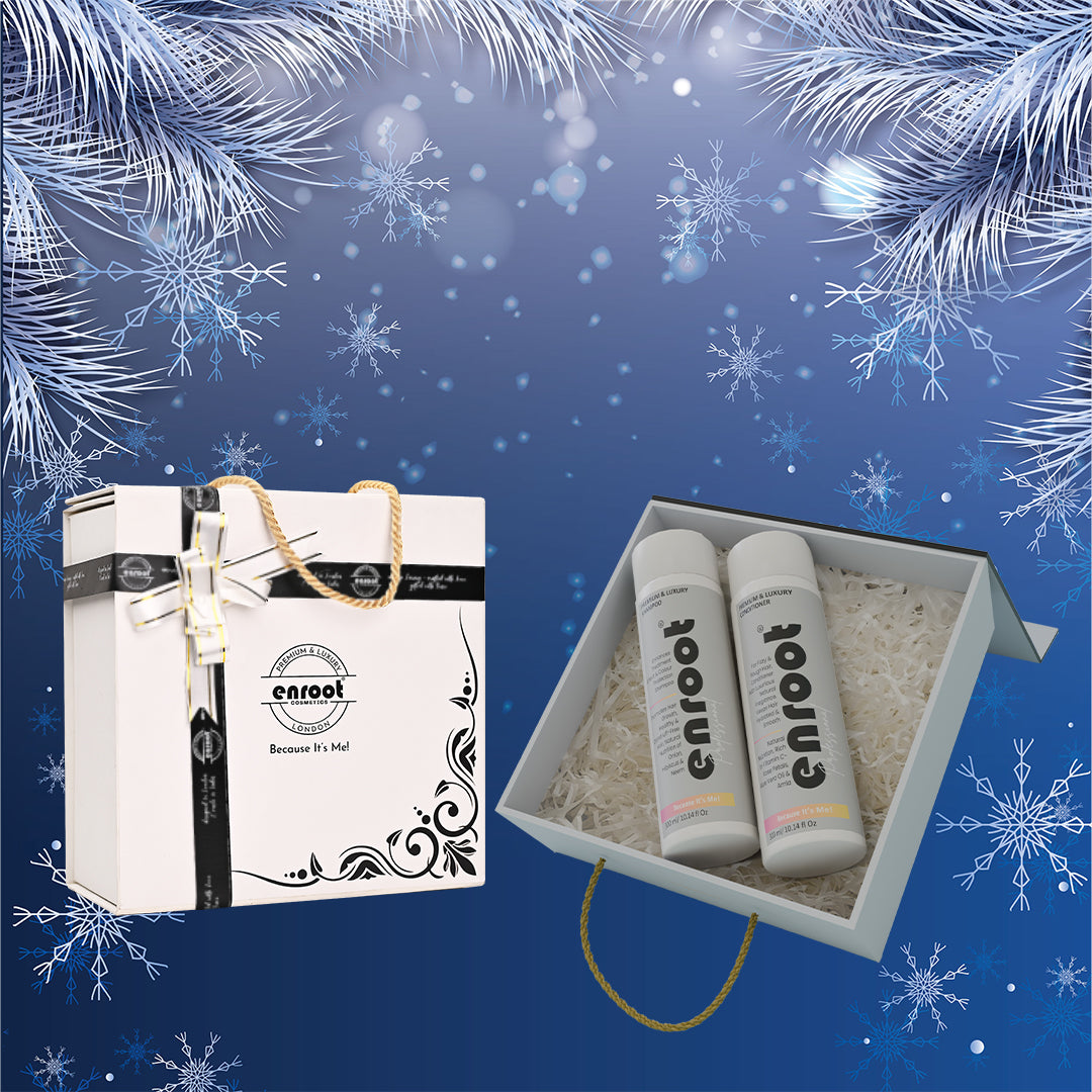Treat someone special to the Enroot Premium & Luxury Nourish & Shine Set. This elegant gift box includes a 600ml duo of shampoo and conditioner, designed to cleanse, nourish, and enhance the natural shine of hair. It’s the ideal gift for those who value luxurious haircare that delivers salon-quality results.